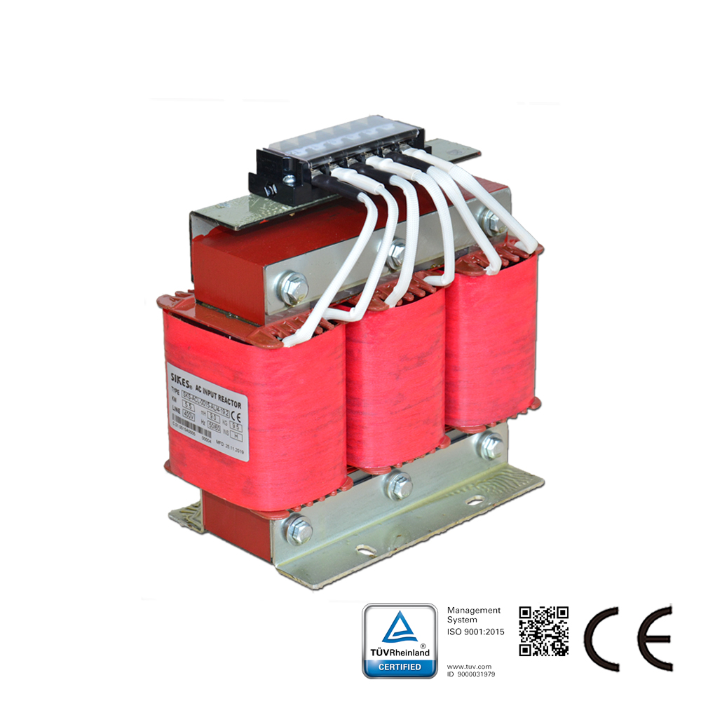 Description of Line Reactor: SKS-ACL series Line Reactor are placed in series with electrical equipment to introduce a specific controlled impedance to the AC circuit. This series are applied at AC drive input side to suppress inrush voltage, reducing inrush and peak current, improving real power factor, restraining grid harmonics and improving the output current waveform. AC Line Reactor also known as input Reactor, AC Choke.