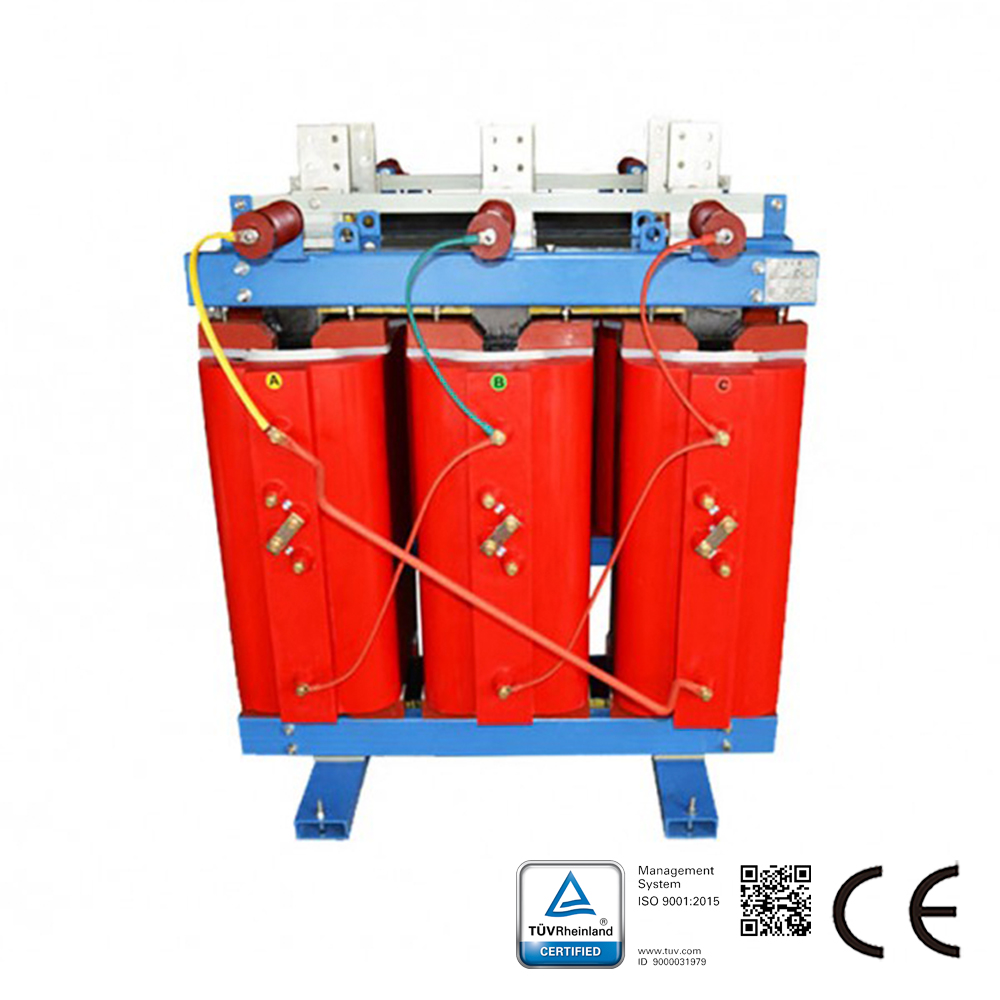 Safe, non-pollute and flame proof, the epoxy-resin filled electric transformer can replace the oil-immersed transformrer. According to IEC60076-11 Standard, iron core is made of high quality cold silicon steel sheet with 45° sloping seam, its barrel is strapped with insulated tape and it is sealed with resin to be safeguarded against corruption and moisture, to lower the no load loss, no load current and iron noise.
