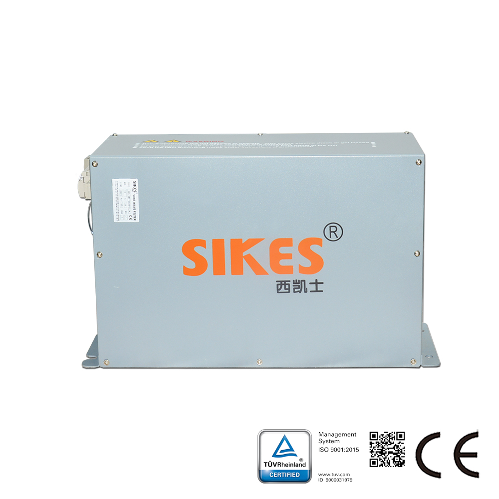 Description of Sine wave filter: SWF Series Sine Wave Filters convert the PWM output signal of motor drives into a smooth sine wave with low residual; Reduce the resonance phenomenon caused by distributed capacitance and inductance of the long cable(longer than 50 meters); Eliminate the excessive motor voltage caused by high dv/dt, Reduce noise of motor by filter application; Prolong motor life; Protecting the motor insulation; Increase transmission distance; With the application of this filter, normal motor can replace variable frequency motor. Characteristic of Sine wave filter: Sikes Sine wave filters for various servo motor of VSD systems(esp for inverters or switching power suppliers),are designed to change the PWM output voltage of the inverter and generate an almost sinu...